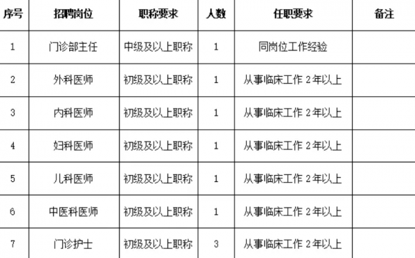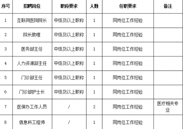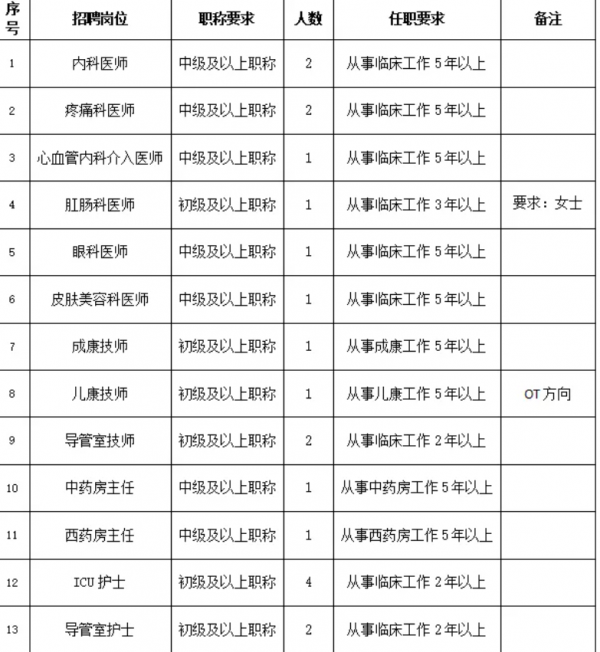 根据医院发展需要,现面向社会公开招聘以下岗位人才: