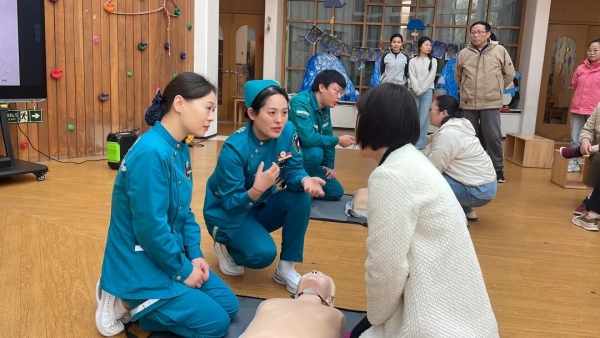 面对孩子,理论是苍白的,行动才是关键。急救人员将急诊科里最揪心、最常见的儿童意外,搬到了课堂。面对“喉咙卡住”的惊魂一刻,拆解了海姆立克急救法的每一个步骤,从婴儿到幼儿,手把手教会在场的老师和家长们,如何用一次标准的“生命的拥抱”,冲破死神的梗阻。当“心跳呼吸”可能停止,急救人员在模型上,演示了心肺复苏(CPR) 的黄金流程。按压的深度、频率、力度,吹气的方式——纠正的是细节,守护的是生命之火。课堂上,老师们在模拟人前反复练习,直到动作标准;家长们凝神记录,并就自家孩子的具体情况频频提问,现场气氛十分热烈。老师和家长们都一直认为:当意外在园内发生,自己能临危不乱,履行好“第二监护人”的专业职责。当风险在家中露出苗头,自己能成为孩子最坚实可靠的“守护神”。