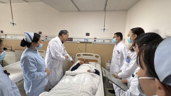 "患者入院时早餐后血糖仍达20.4,情况相当危急。"李全忠院长亲自到病床前会诊,仔细询问病情,并与医疗团队共同制定针对性治疗方案。