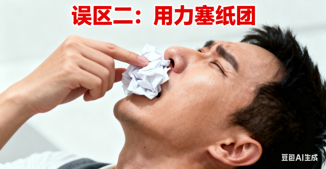 ❌ 禁止用纸巾胡乱填塞:未经消毒的纸巾可能携带细菌,且粗糙的纸团可能进一步损伤鼻腔黏膜,加重出血。