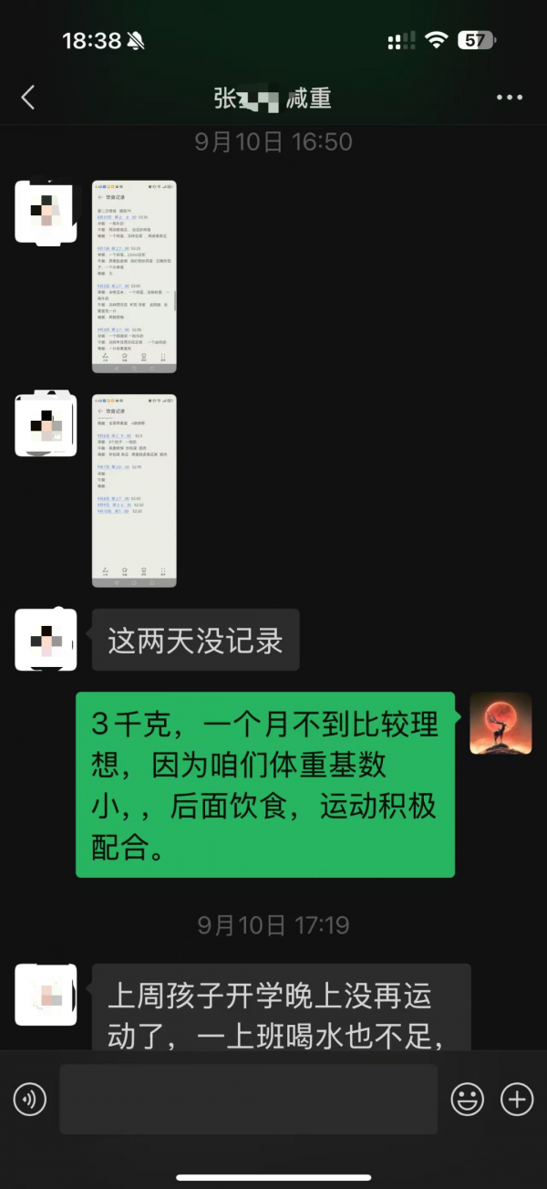 在整个减重过程中,张女士坚持记录饮食与体重变化,并配合适度运动和充足饮水。尽管中途因孩子开学、工作忙碌等原因,运动和饮水有所减少,体重出现短暂平台期,但在代主任的持续跟踪与鼓励下,她很快调整回来。