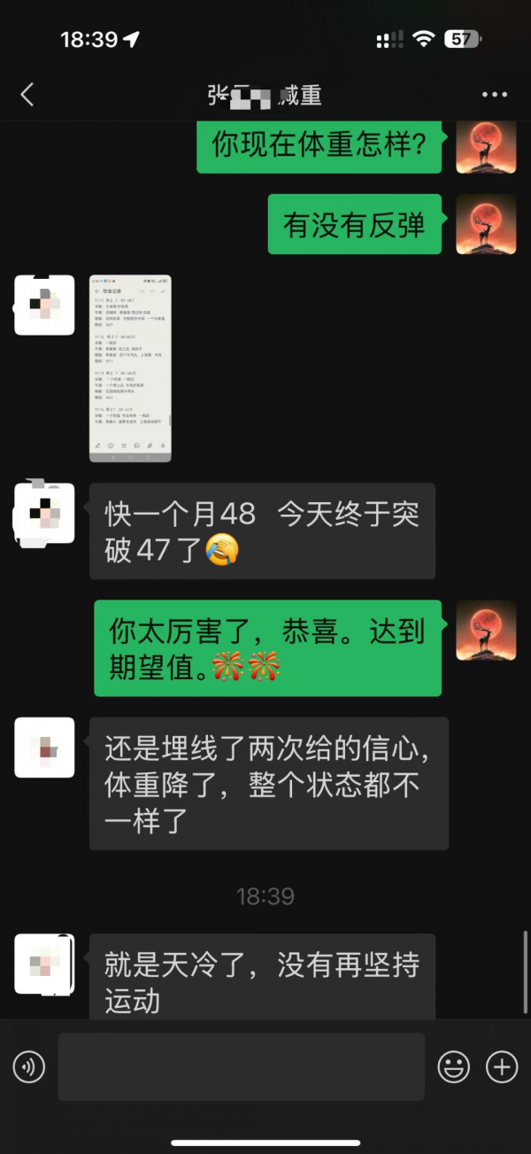 “快一个月48,今天终于突破47了!”张女士在最近一次沟通中欣喜地分享。从8月到10月,她累计减重近9公斤,不仅达到了理想体重,整个人的精神状态、身体感受也焕然一新。