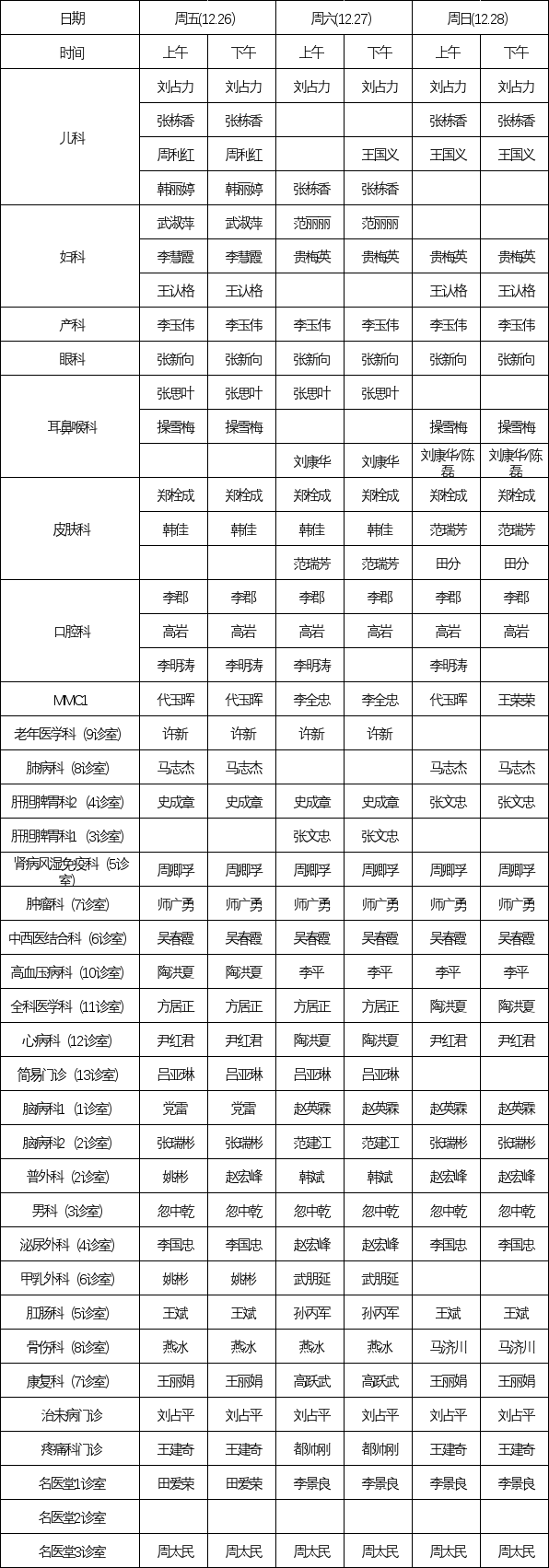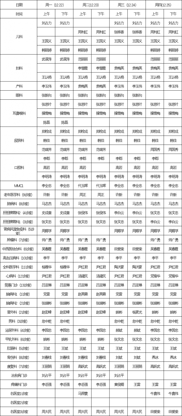 2025.12.22-2025.12.28门诊专家坐诊表