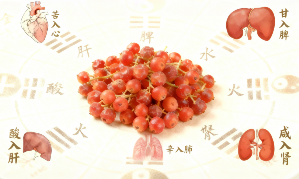 这不起眼的红色小果,却蕴藏着中医“五行平衡”的智慧。五味子之名,源于它独特的五味俱全——酸、甘、苦、辛、咸,正好对应五脏:酸入肝、甘入脾、苦入心、辛入肺、咸入肾。这种天然的“五行平衡”,让它成为一味能同时调理五脏的珍贵药材。