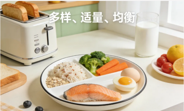遵循“多样、适量、均衡”的原则,多选择全谷物、新鲜蔬菜和优质蛋白,减少高糖、高脂食物的摄入,合理安排三餐,避免暴饮暴食。