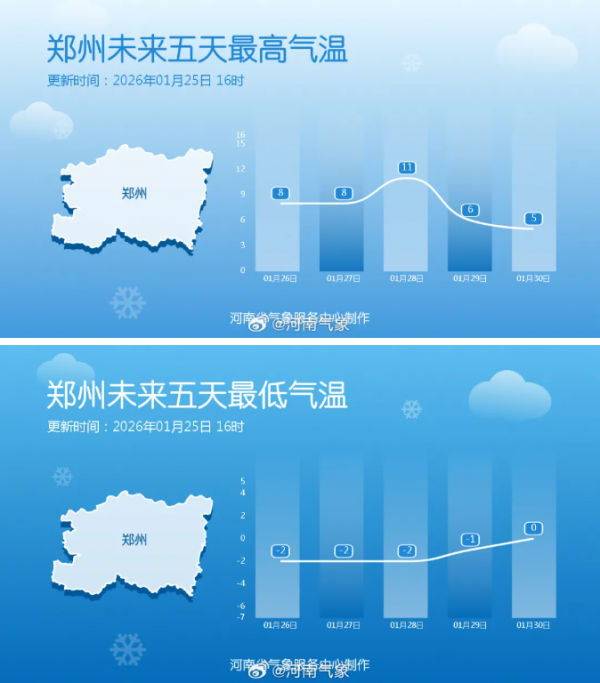 1月29日:多云转阴天,下午到夜里有小到中雪 -2~5℃