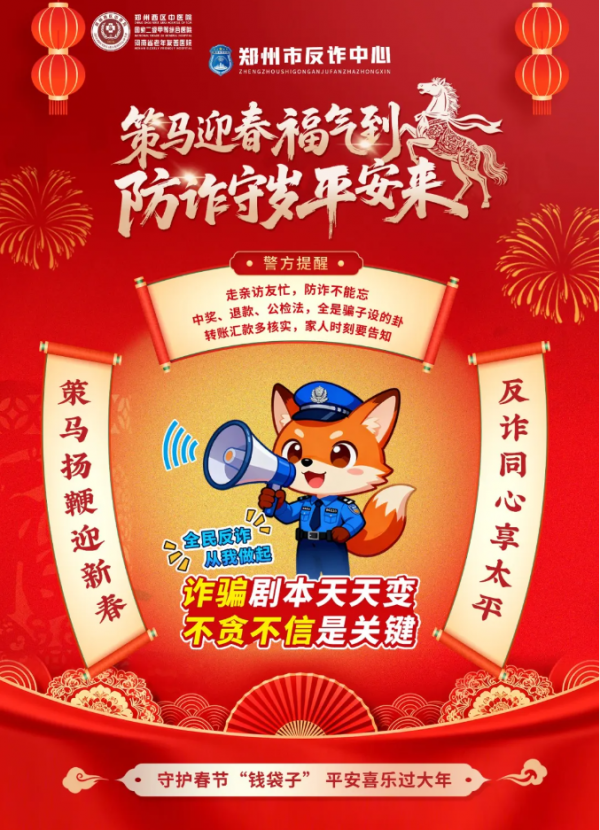 郑州西区中医院作为国家二级甲等综合医院和河南省老年友善医院,一直致力于服务群众健康,同时也积极参与社会公益活动。此次与郑州市反诈中心合作开展反诈宣传,旨在提升群众的防范意识,共同营造平安和谐的节日氛围。