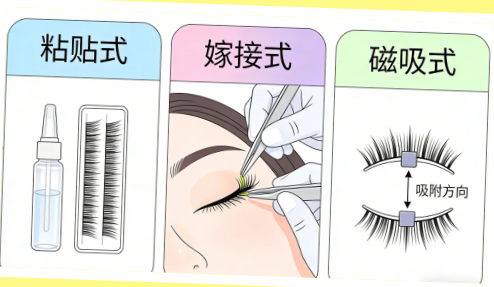 市面上的假睫毛主要分粘贴式、嫁接式和近年火起来的磁吸式。无论是用胶水粘,还是逐根“嫁接”,甚至是靠磁力吸附,都可能对眼睛带来不可逆的伤害。