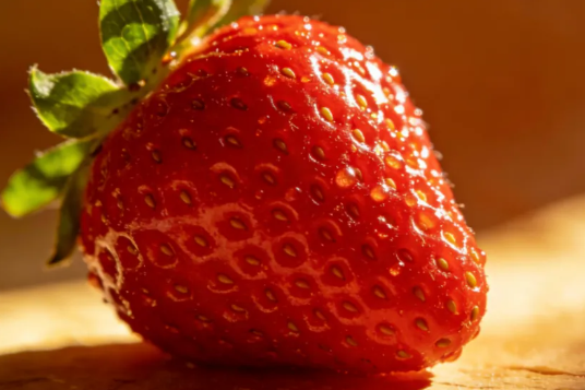 选择全身通红均匀的草莓;果蒂鲜绿翘起的是自然成熟;表面的果籽呈金黄色为佳。