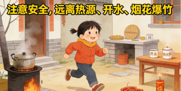 孩子满院跑,看好热源、开水、烟花爆竹