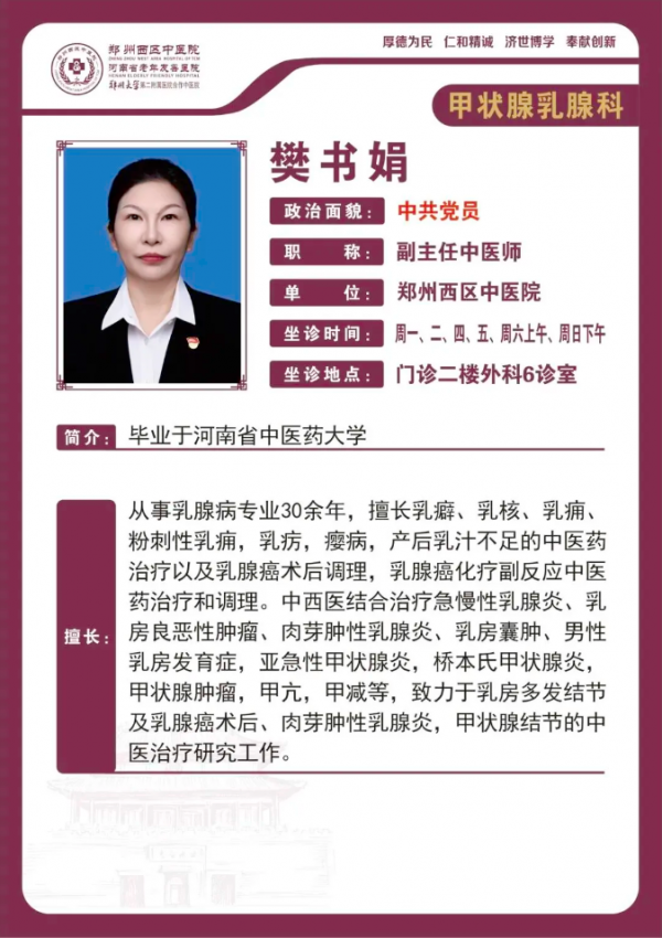 甲状腺乳腺外科:专注于甲状腺结节、甲亢、甲状腺癌及乳腺增生、乳腺肿瘤等疾病的诊治。利用超声引导下微创穿刺技术、美容缝合等技术,联合中药内服外敷,减少术后并发症,调节内分泌平衡。