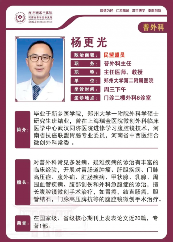 如果您觉得身体有不适,或者从来没查过肝功能,欢迎来郑州西区中医院门诊2楼外科2诊室咨询就诊,我们为您的肝脏健康保驾护航。