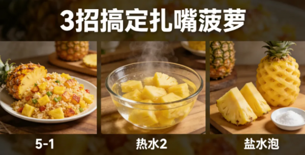2. 热水浸泡:菠萝切块,直接用开水泡几分钟,热水能灭活蛋白酶,也能溶解草酸钙结晶。