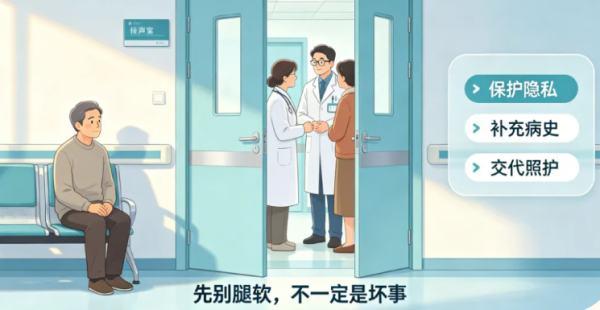 电视剧看多了,一听这话就觉得自己“完了”。其实不一定。可能是为了保护隐私,单独问你一些不方便当众说的情况;也可能是需要家属补充病史,或者交代出院后的照护细节。